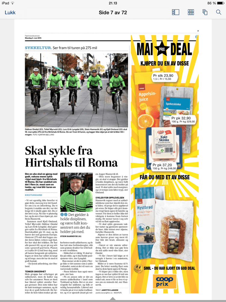 Kjekke karer i dagens avis. Nå er det ingen vei tilbake – Roma er målet! Avreise om 6 dager.
